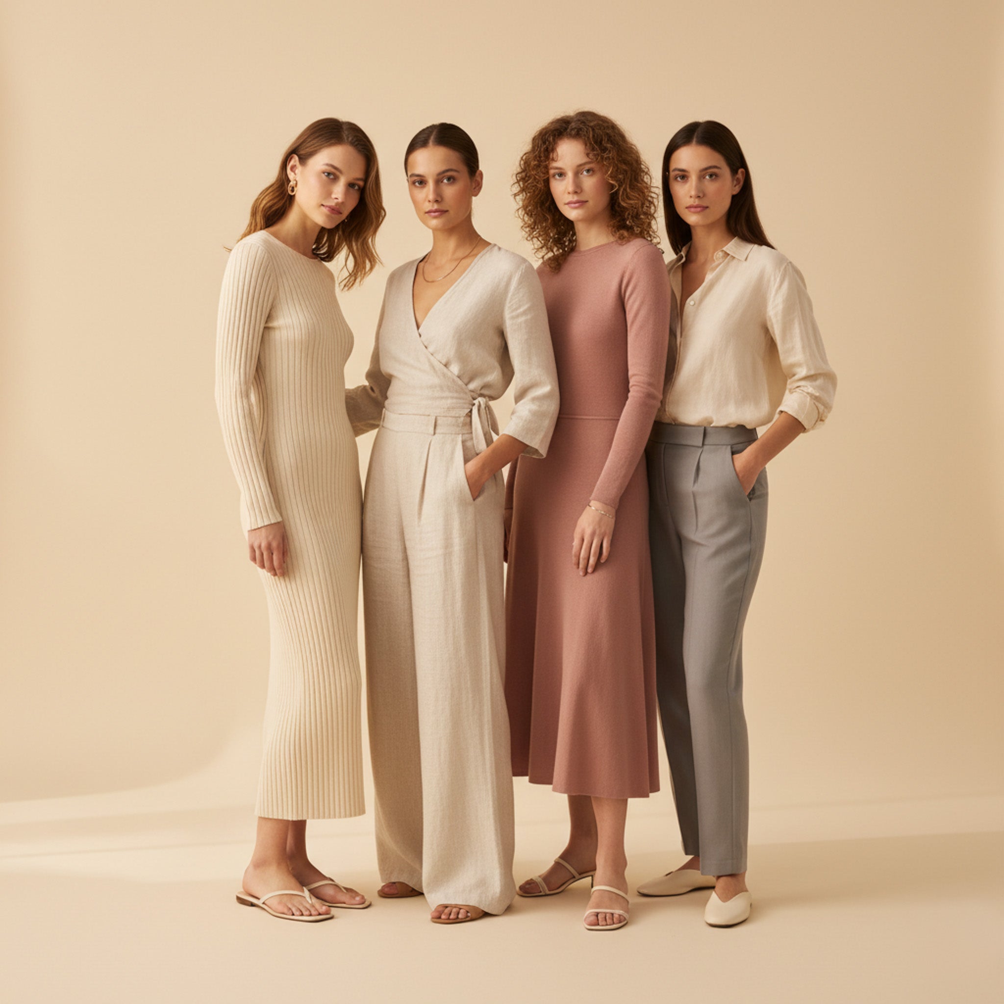 Our palette reflects this understated sensibility. Soft neutrals, warm earth tones and gentle shades that blend effortlessly into a cohesive wardrobe. Nothing competes for attention. Everything flows together naturally, allowing each piece to be worn and reworn in countless ways.
