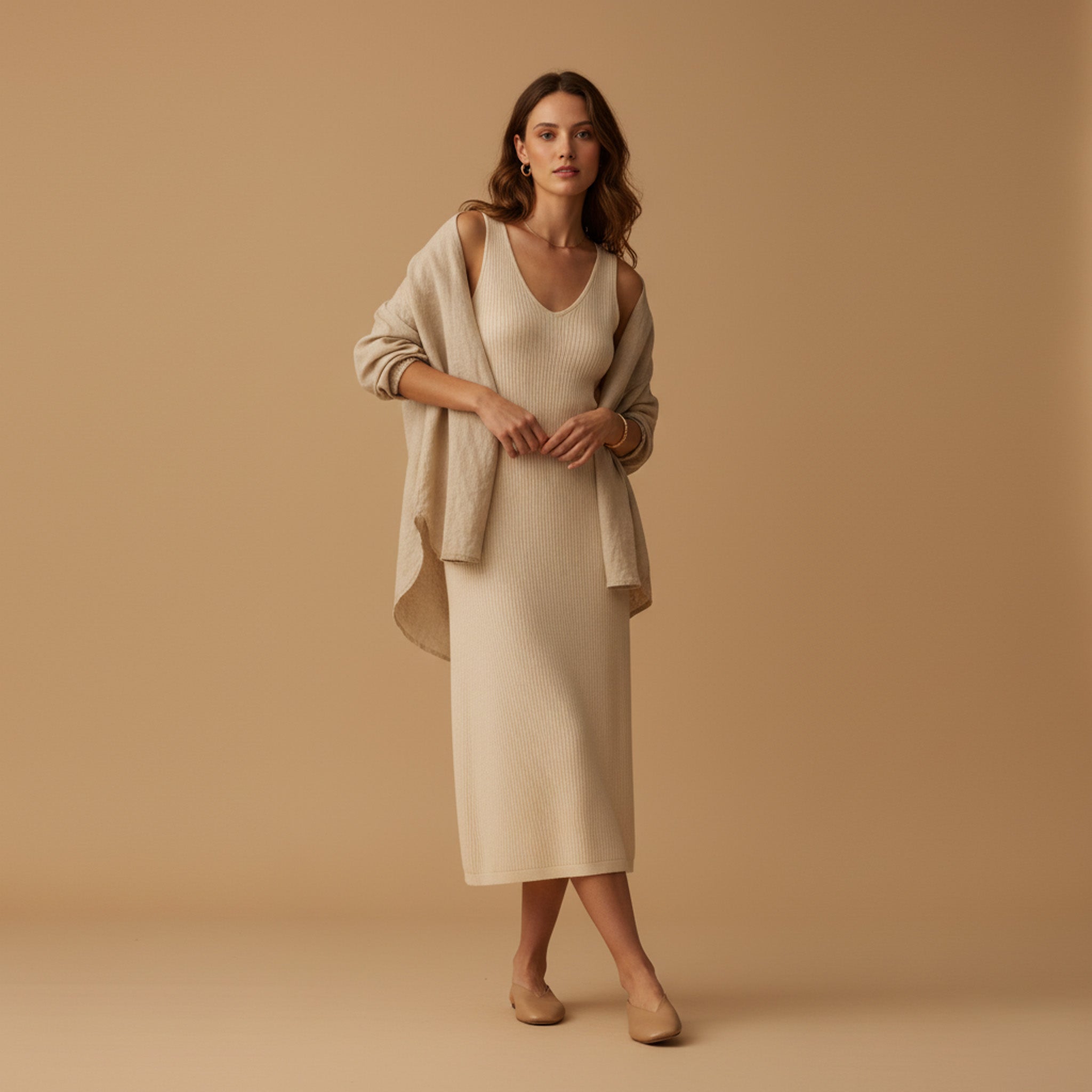 Every piece begins with a feeling — softness, ease, calm. We design clothing that moves with a woman’s life, not against it. Nothing loud, nothing complicated. Just refined silhouettes, thoughtful details and fabrics chosen for their natural comfort. Linen that softens with every wear. Knits that drape with ease. Cotton that breathes through long days. Silks that glide like second skin. These are garments meant to be lived in.